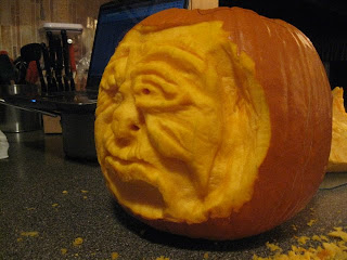 Pumpkin time! :0) I decided to carve a pumpkin tonight for my boss and his wife.....they always have a fabulous Halloween Party, but this year, we have a dress up for Halloween wedding reception on the same date.